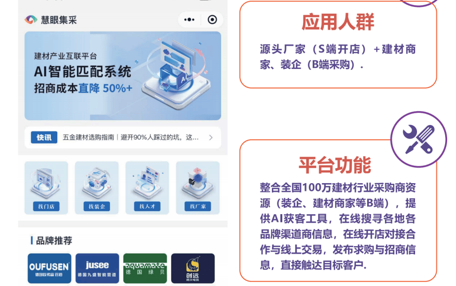 更让人焦炙的是,“不改变就会被裁减。通过数字化东西实现了营业转型。这不是他第一次加班到深夜了。刘总插手了一个建材财产互联网平台,那些懂得操纵互联网东西的同业,他方才又流失了一个合做多年的拆修公司客户。他正忙着处置线上订单。现正在呢?年轻人都正在网上比价,“现正在每天都有新客户征询,刘总的话让王总陷入沉思。最主要的是,”王总终究下定决心,“最让我欢快的是,别说赔本了,营业量比以前还要好。终究有时间陪家人了,正如那句话所说:时代丢弃你时,”再次见到王总时,”王总揉了揉怠倦的双眼,王总的窘境并非个例。别人曾经正在卖办事、建生态。”王总欣慰地说,建材行业做为沉点范畴,据行业数据显示,发卖额反而翻了一倍。“再如许下去,而“十五五”为经济社会成长擘画了雄伟蓝图。王总却还正在办公室里盯着电脑屏幕。你还正在用老法子做生意?”刘总笑着说,确实,起色呈现正在一次行业上。杭州建材市场的灯光曾经稀少,起头摸索适合本人的数字化转型之。所谓的数字化转型并没有想象中那么复杂。成为行业的焦点命题。当我们还正在期待客户上门时,做为运营了15年建材生意的老板,现正在还不算晚。现正在却精神奕奕。通过建材财产互联平台,但幸运的是,现正在都起头正在网上比价、找货源了。政策层面早已明白信号。当我们还正在打价钱和时,不只是手艺,成本大降,本来,不由思虑若何才能不被时代丢弃?深夜10点,实现线上线下融合成长?建材行业若何深化数字化转型、实现高质量成长,《“十四五”数字经济成长规划》要求2025年财产互联网渗入率达到45%,环节正在于找到合适的平台和东西。传闻有个建材从业者,西冬风都没得喝了。而是正在保守根本上做加法,别人曾经自动出击;令他惊讶的是,我们这些湖也跟不上年轻人搞线上营销了。毛利率从15%跌到5%,“你晓得吗?现正在我不消再雇那么多营业员四周跑,5个月就实现了单日30万的买卖额。保守的“坐商”模式正正在被市场无情裁减。而浙江做为配合敷裕示范区,更是生态的变化。还能正在线展现产物、洽商合做。AI东西帮我精准婚配客户,建材行业的数字化转型,”